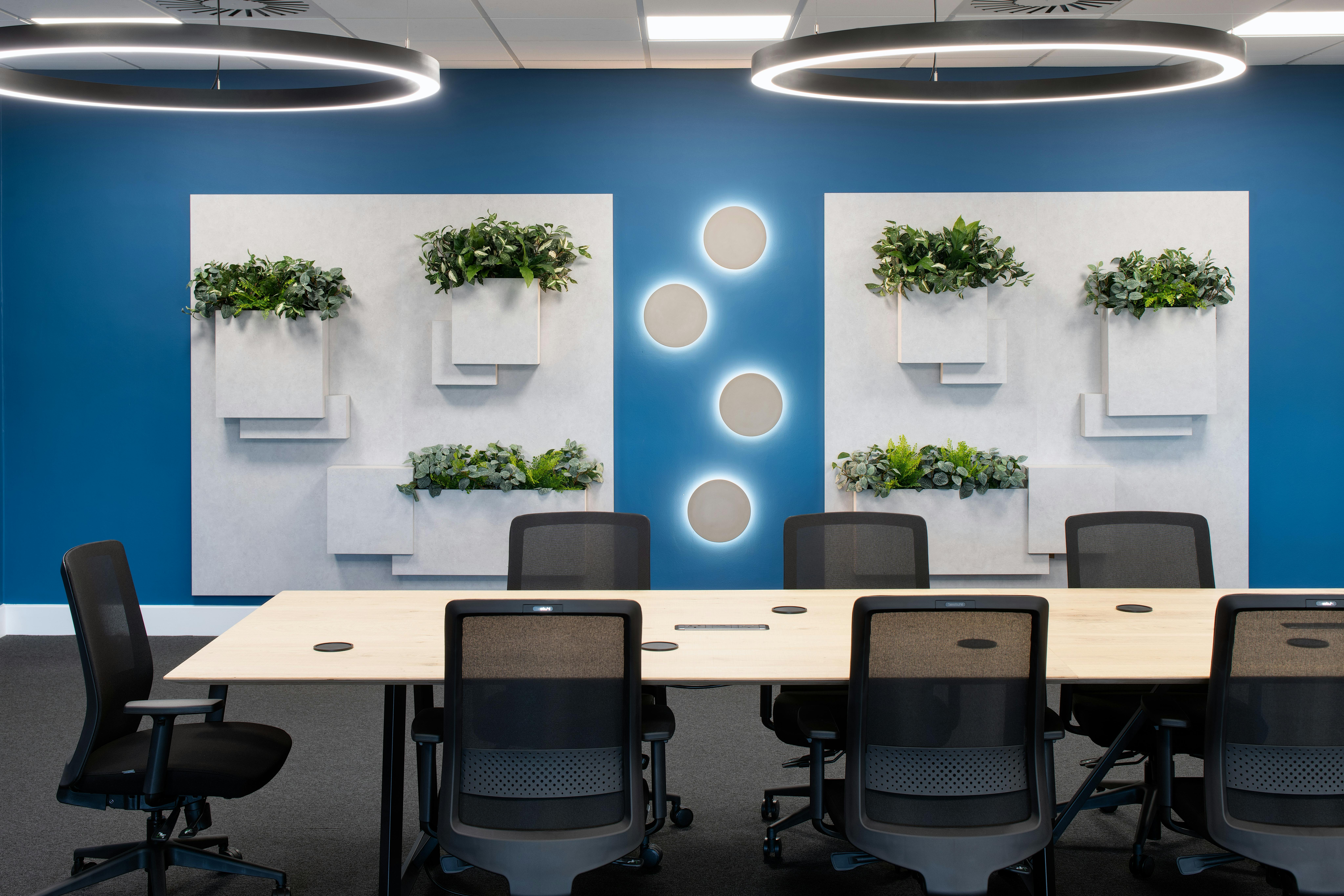 Confidential conversations should remain exactly that – confidential. Incorporating acoustic solutions such as soundproof meeting rooms, phone booths, and acoustic panels like fabric-wrapped wall panels or ceiling baffles supports employee wellbeing and mitigates the risk of sensitive information being overheard.